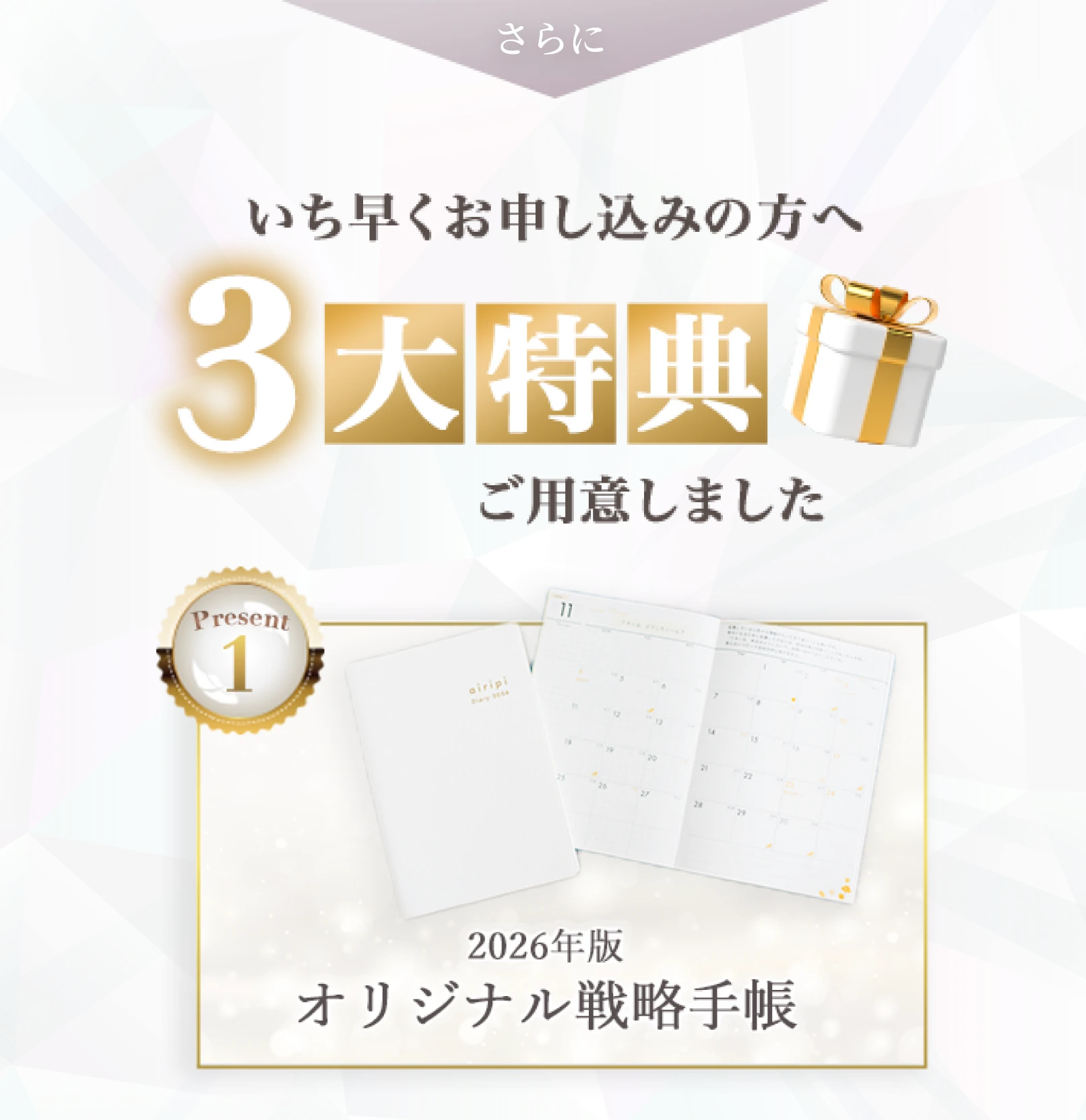 特典のオリジナル手帳はいつ頃届きますか?