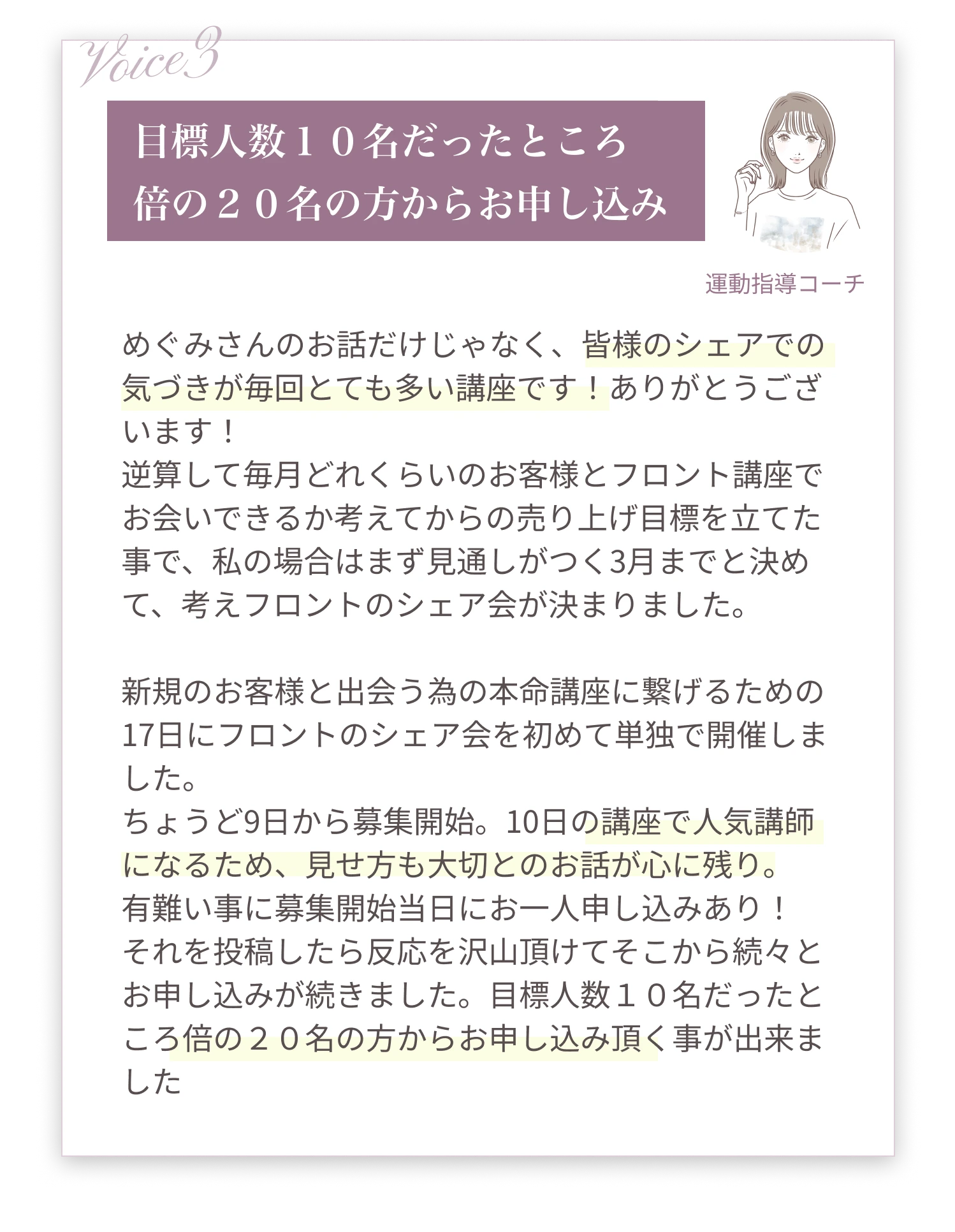 - 満席運営を当たり前にしたい